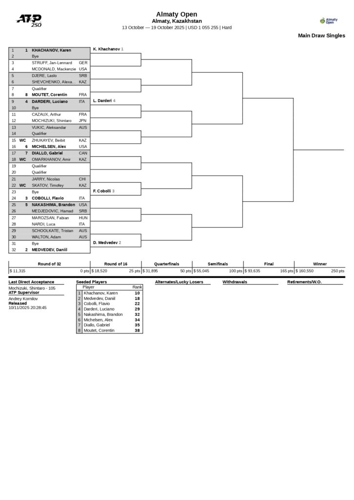 Para sorpresa, el torneo no contará con la presencia del principal tenista del país, un Alexander Bublik que este año ha ganado cuatro títulos y que sería una buena oportunidad para jugar con su público. En su reemplazo, las cartas locales serán Alexander Shevchenko, Beibit Zhukayev, Amir Omarkhanov y Timofey Skatov.