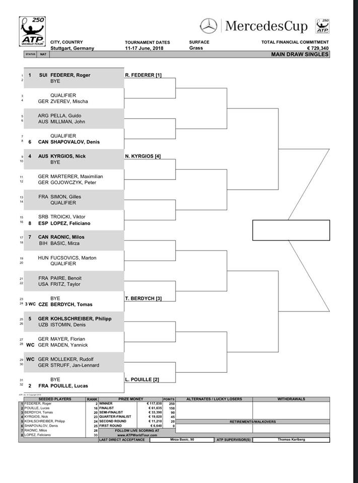 ATP de Stuttgart y s-Hertogenbosch: Cuadros principales