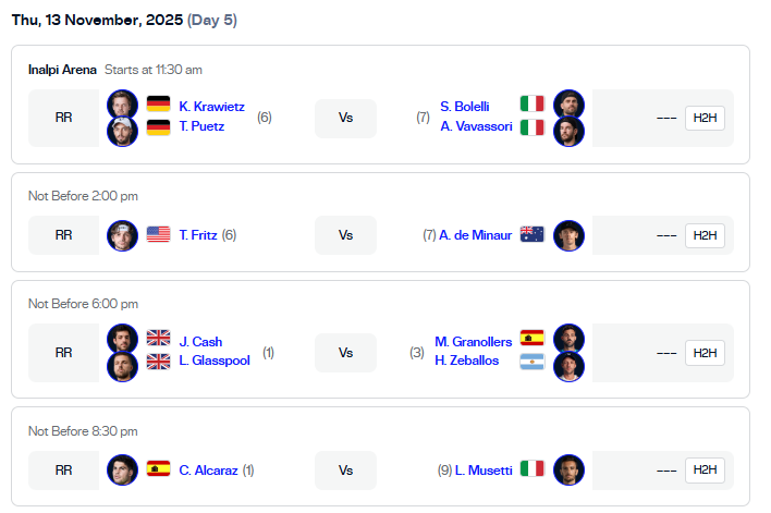 Esta semana se juegan las ATP Finals en Turín, el torneo que reúne a los ocho mejores jugadores de la temporada y conoceremos quién será el maestro de la temporada 2025. Este jueves inicia la última jornada del Grupo Jimmy Connors, donde todos los cuatro jugadores aún tienen chances de poder clasificar a las semifinales, aunque Carlos Alcaraz parte con ventaja al llevar dos victorias.
