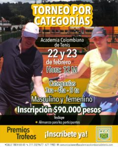 Se acerca el penúltimo fin de semana de febrero y la Academia Colombiana de Tenis se alista para una nueva parada del ‘Circuito ACT’ en el que hombres y mujeres …