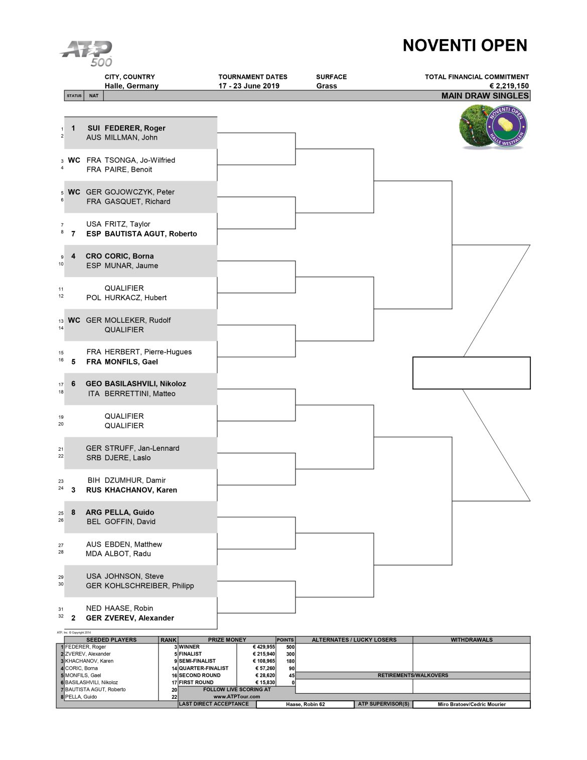 Fue sorteado este sábado el cuadro principal del ATP 500 de Halle (Alemania), torneo que tendrá en escena al suizo Roger Federer, vencedor de esta competencia en nueve ocasiones. Justamente, …