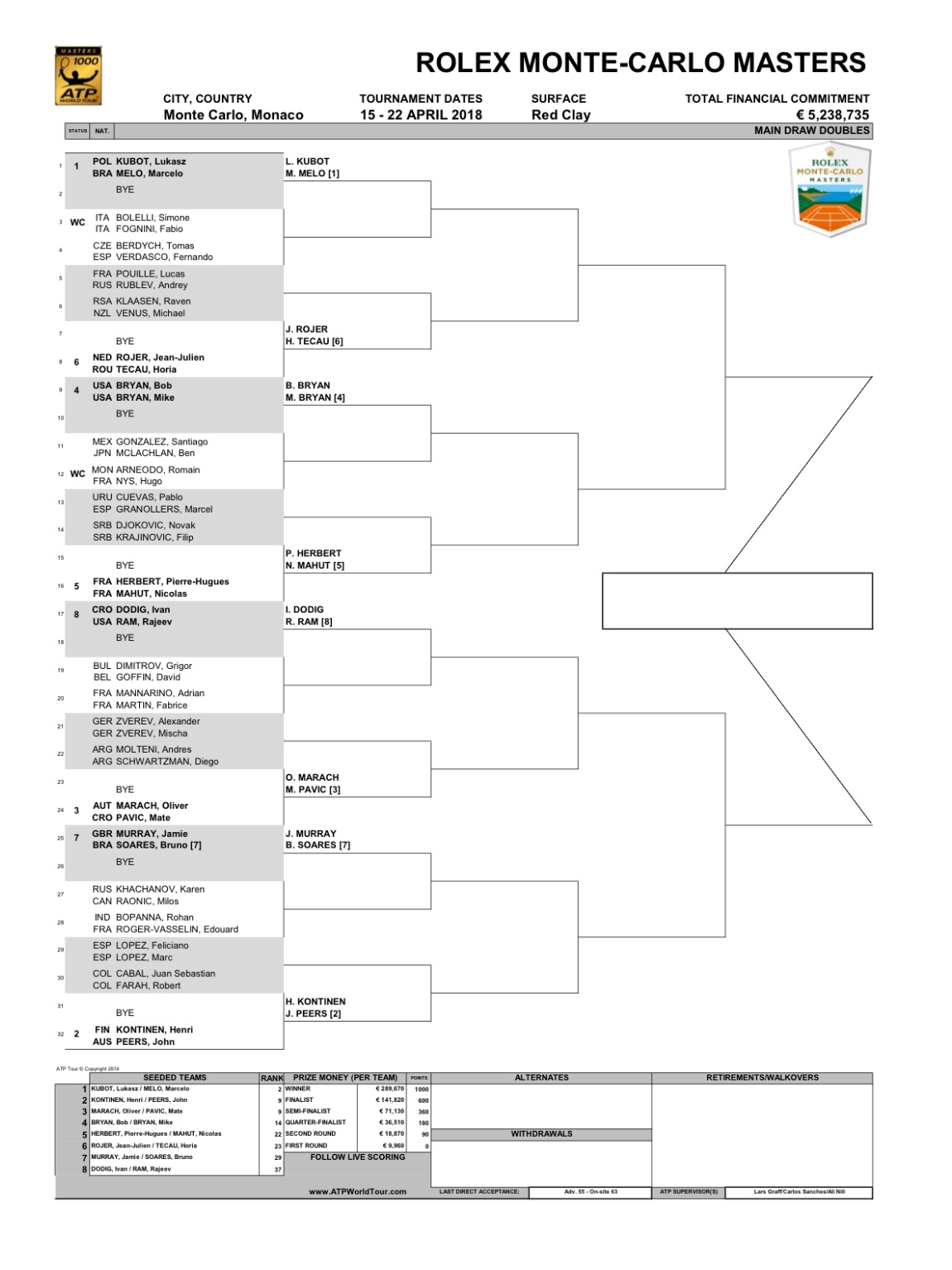 El sorteo deparó, que los españoles Feliciano y Marc López, sean la primera prueba de los jugadores vallecaucanos. El historial entre favorece a los colombianos, pues ganaron el único encuentro que disputaron, justamente en la primera ronda de este evento, pero en el 2016. De superar ese primer escollo, enfrentarán a los segundos favoritos al título, John Peers y Henri Kontinen.