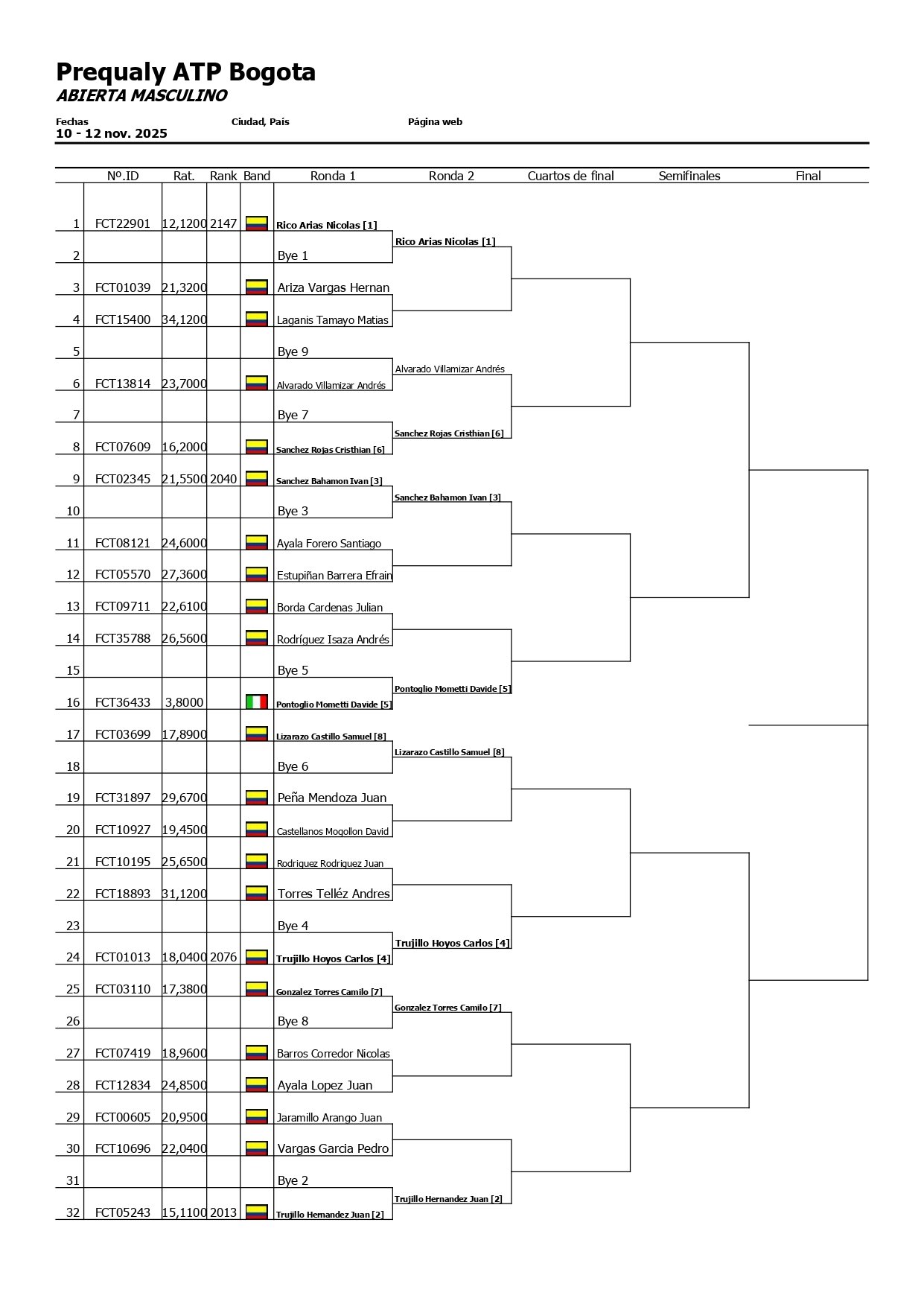 A continuación, el cuadro del torneo prequaly del Challenger Bogotá 2025: