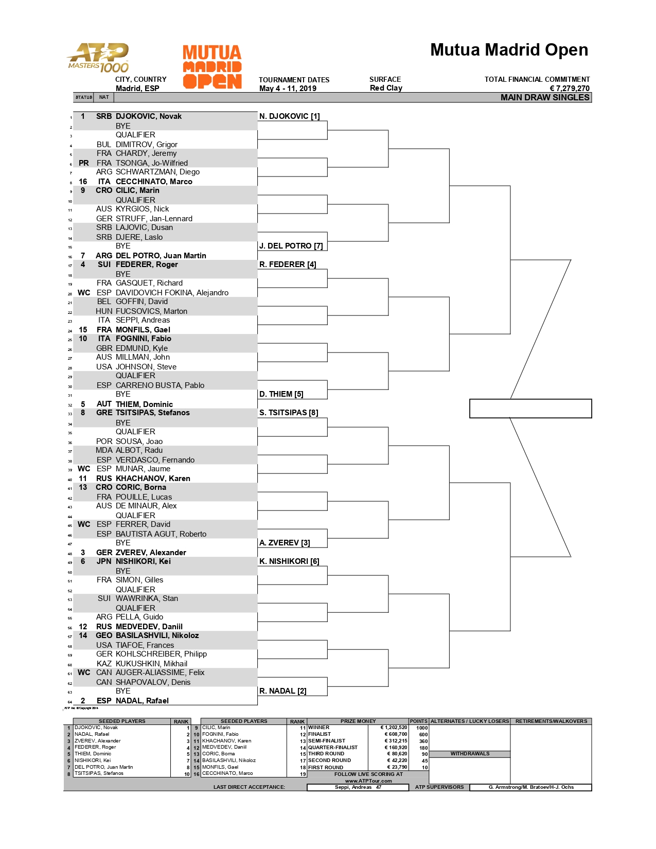 Este es el cuadro masculino completo para el Mutua Madrid Open 2019.