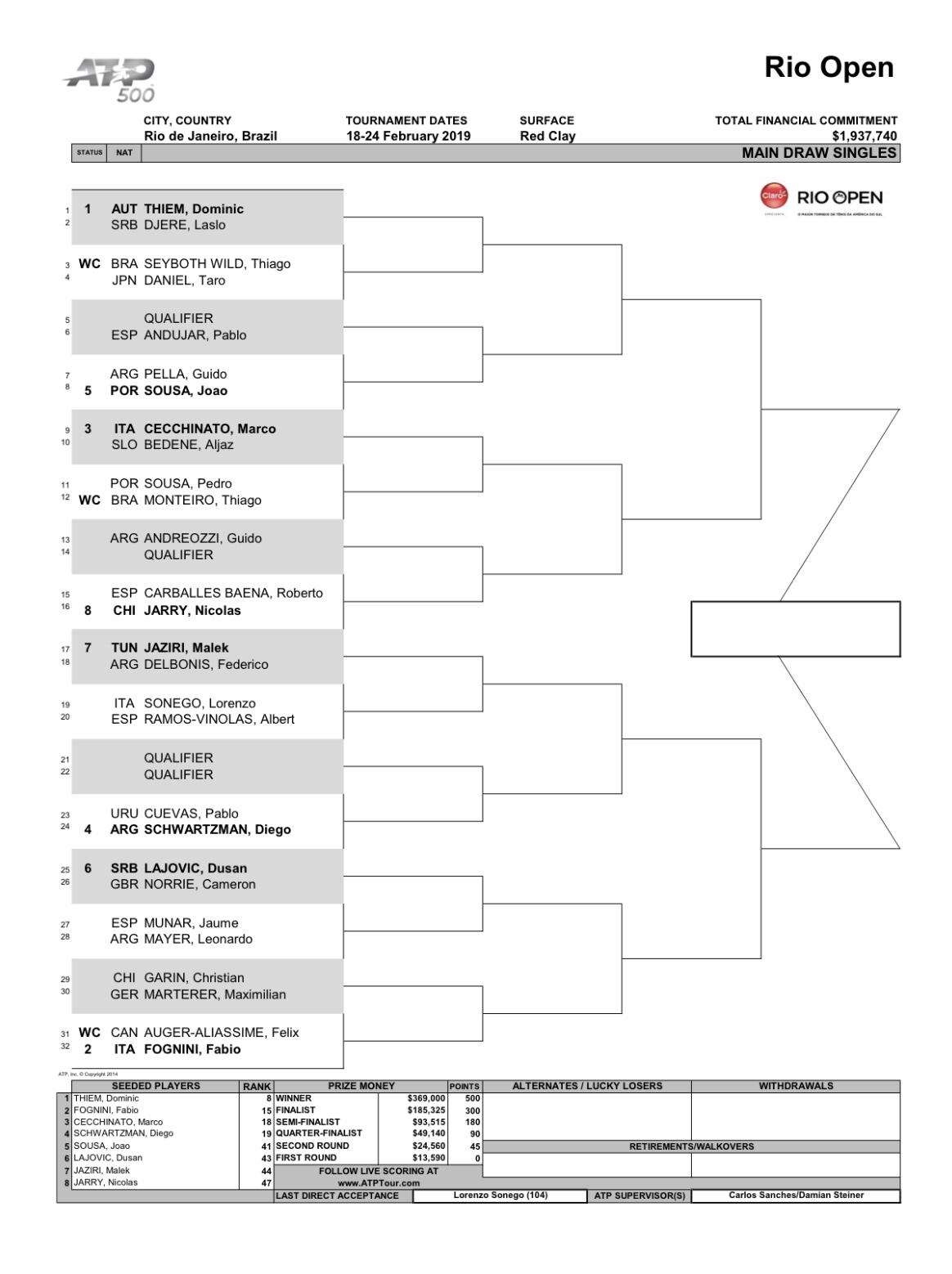 Para la sexta edición del ATP 500 de Río de Janeiro Dominic Thiem aparece en el radar como el único top ten. No obstante, hay jugadores especialistas en polvo de ladrillo que podrían poner a prueba al austriaco, como lo son Fabio Fognini, Marco Cecchinato y Diego Schwartzman. Además, los chilenos Nicolás Jarry y Christián Garín, también intentarán animar la fiesta.