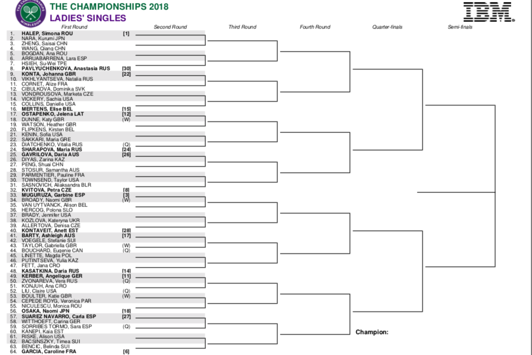 Cuadro principal masculino de Wimbledon 2018: