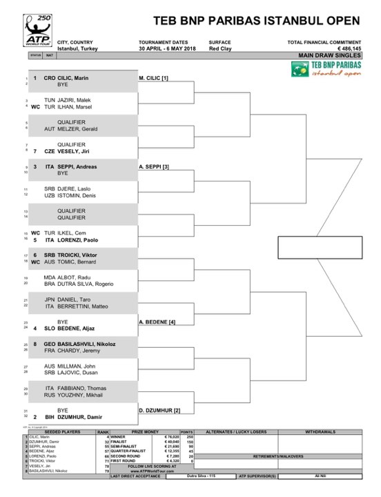En el ATP 250 de Estambul, Marin Cilic aparece como el máximo favorito a llevarse el título, mientras que el BMW Open de Múnich gozará de la presencia del mejor jugador alemán del momento, Alexander Zverev; además de Hyeon Chung, Diego Schwartzman y Roberto Bautista Agut, entre otros. Por último, en el certamen ‘luso’ que se llevará a cabo en Estoril, Kevin Anderson y Pablo Carreño Busta figuran como las principales figuras.
