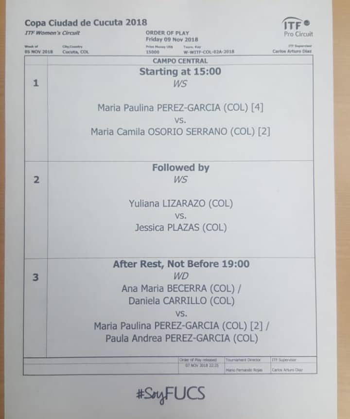 Las apertura de las acciones estará a cargo de jugadores como Alejandro Hoyos (vs. Jorge Panta) y Ana María Becerra y Yuliana Lizarazo, quienes se medirán entre sí en uno de los cuatro choques netamente colombianos que componen el orden de juego.