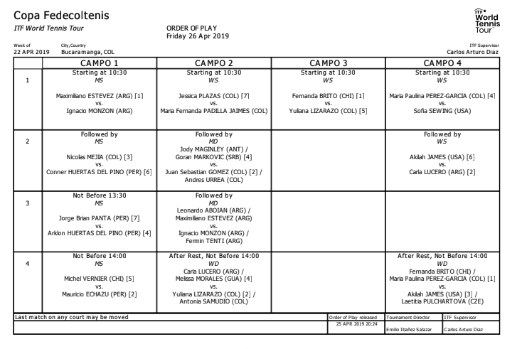 La recta final del ITF de Bucaramanga comienza a asomar en el Club Campestre, donde tan solo quedan ocho aspirantes al título -en cada rama-, incluyendo a cinco colombianos: Nicolás Mejía, Jessica Plazas, María Fernanda Padilla, Yuliana Lizarazo y María Paulina Pérez.