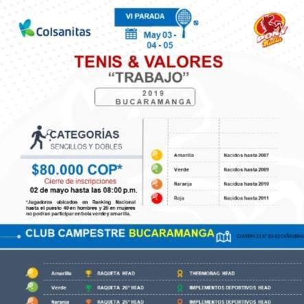 El Club Campestre de Bucaramanga, sede la semana anterior de un torneo del Circuito ITF World Tennis Tour será el encargado de recibir este certamen, previsto para los días 3, 4 y 5 de mayo. La organización de la competencia ha tomada la decisión de inculcar en esta ocasión el valor del Trabajo.