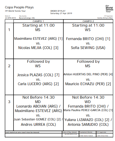 Consulta el orden de juego de una jornada que comenzará a partir de las 11:00 am: