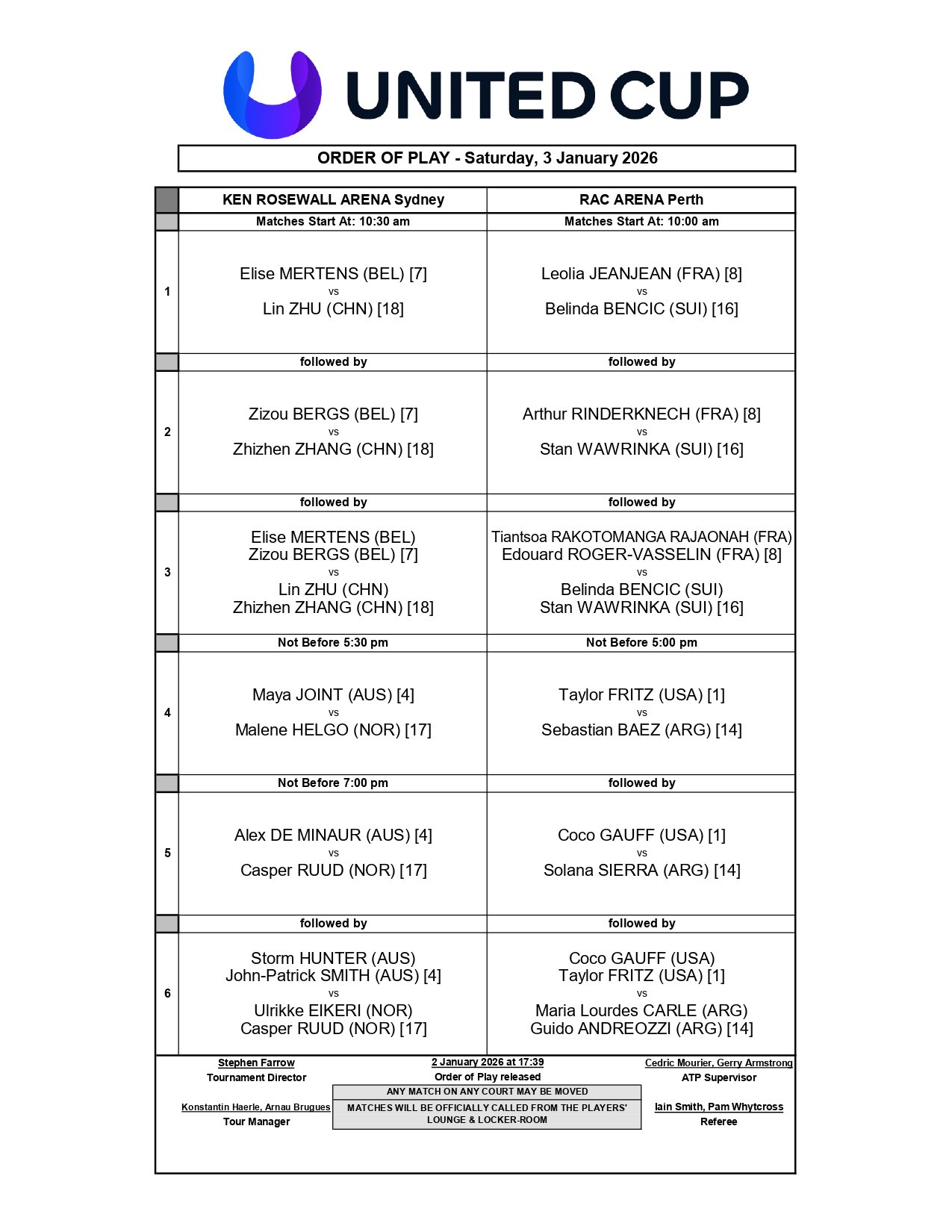 Esta es la programación del 2 de enero en la United Cup 2026: