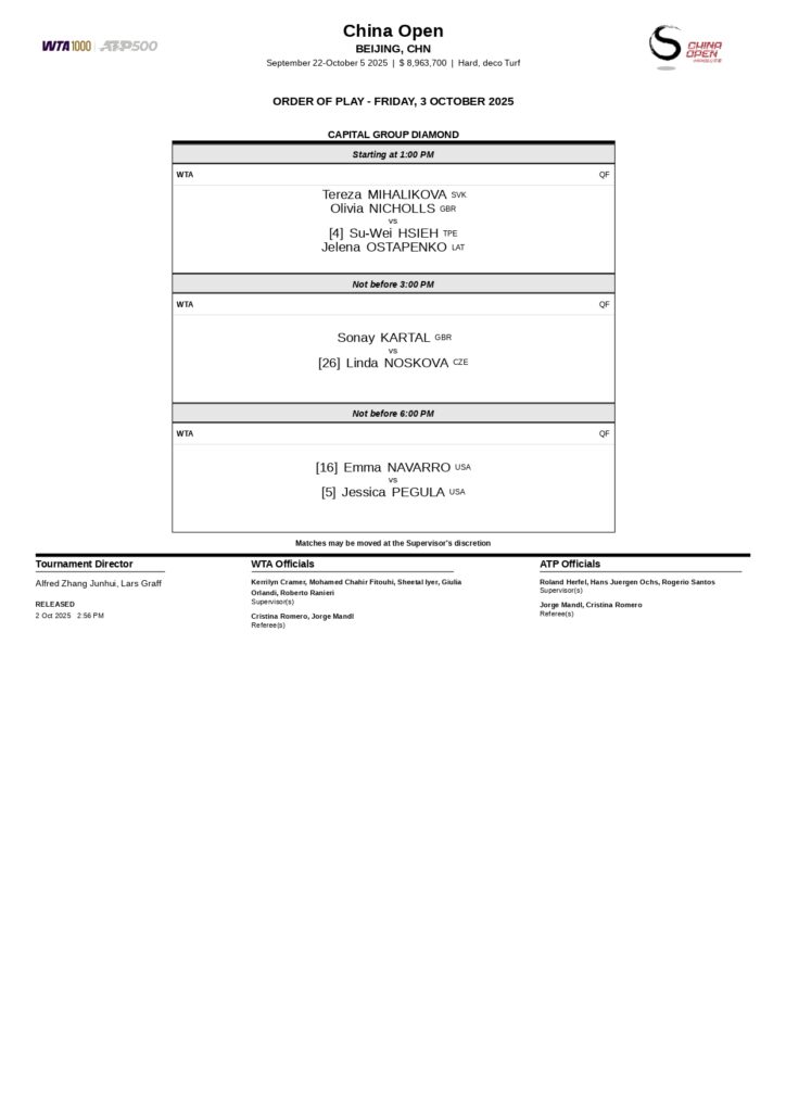 Estamos llegando a la fase final del WTA 1000 de Beijing y este viernes es el turno de conocer a las dos semifinalistas de la parte superior del cuadro, luego de las victorias de Amanda Anisimova y Coco Gauff este jueves, quienes se enfrentarán por un puesto en la final.