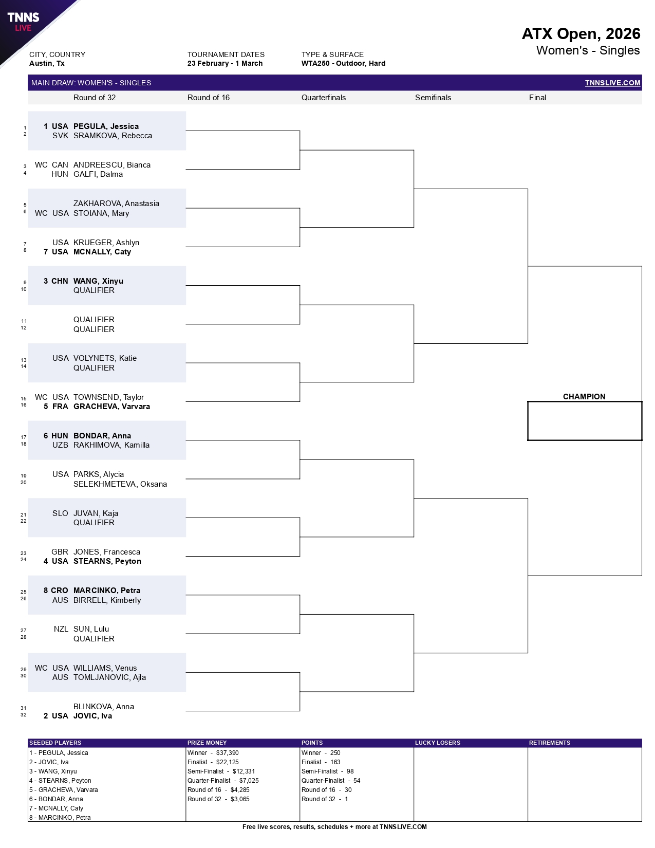 Se llevó a cabo el sorteo del cuadro principal del WTA 250 Austin, Texas (Estados Unidos), uno de las dos competencias del Circuito WTA que se llevarán a cabo la próxima semana en el continente americano, siendo la otra el WTA 500 Mérida (México). La principal figura en el certamen texano será la anfitriona Jessica Pegula, quien el pasado sábado se consagró en el WTA 1000 Dubái (Emiratos Árabes Unidos).