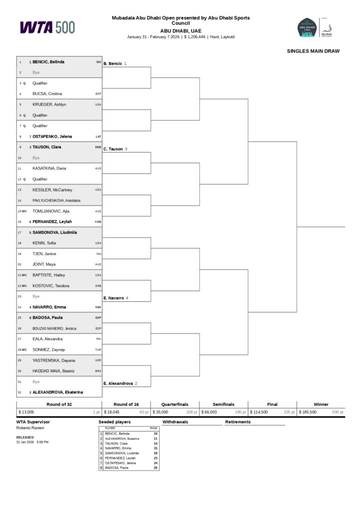 Luego de lo que ha sido el Abierto de Australia, el circuito de la WTA no se detiene y se dirige a la gira de Medio Oriente, siendo la primera escala el WTA 500 de Abu Dhabi, el cual contará con un buen cartel de jugadoras para asegurar emociones durante la semana.