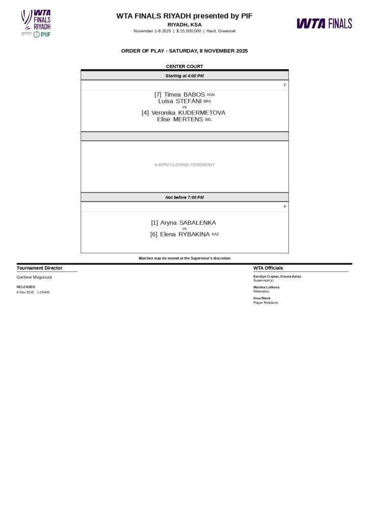 Este sábado finaliza la acción de las WTA Finals 2025 y se juegan las finales de sencillos y dobles, con la primera teniendo una gran atracción con Aryna Sabalenka y Elena Rybakina, quienes buscan ganar por primera vez este torneo.